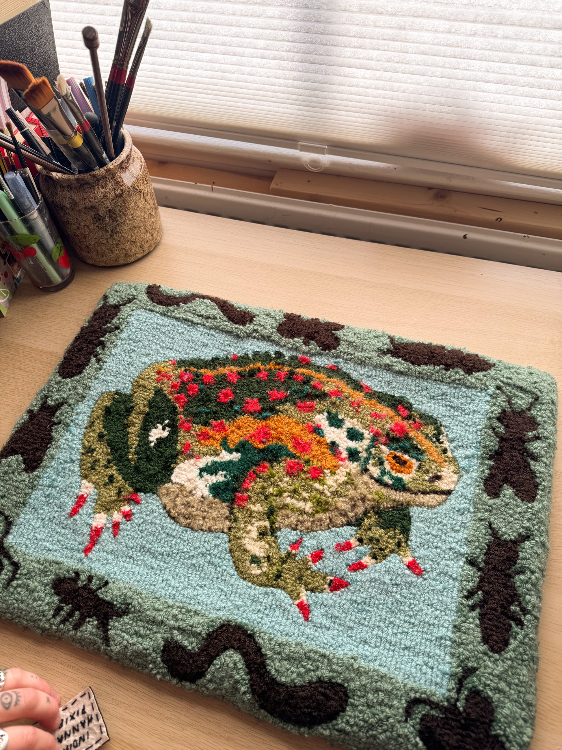 Made entirely using a punch needle with mostly vintage and second hand yarn in as many colours, shades and textures I could possibly squeeze in!!