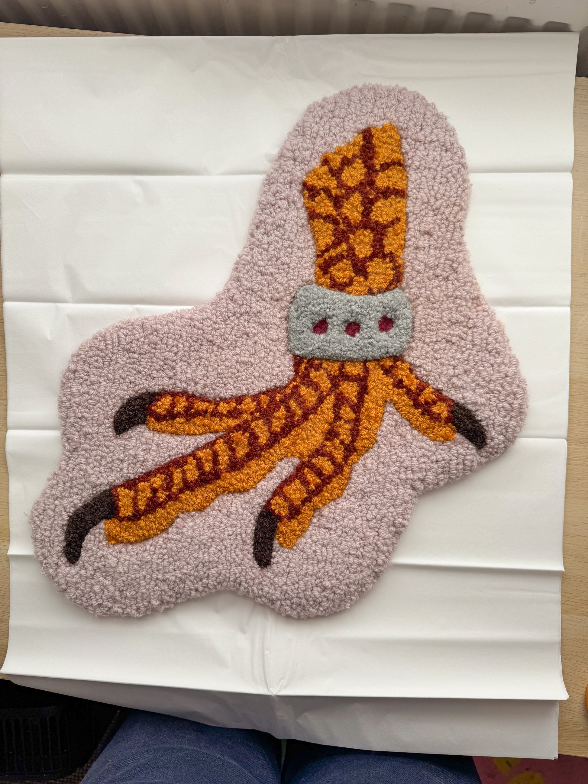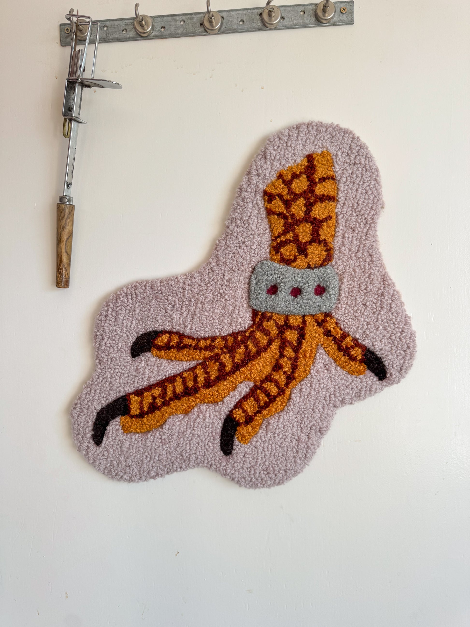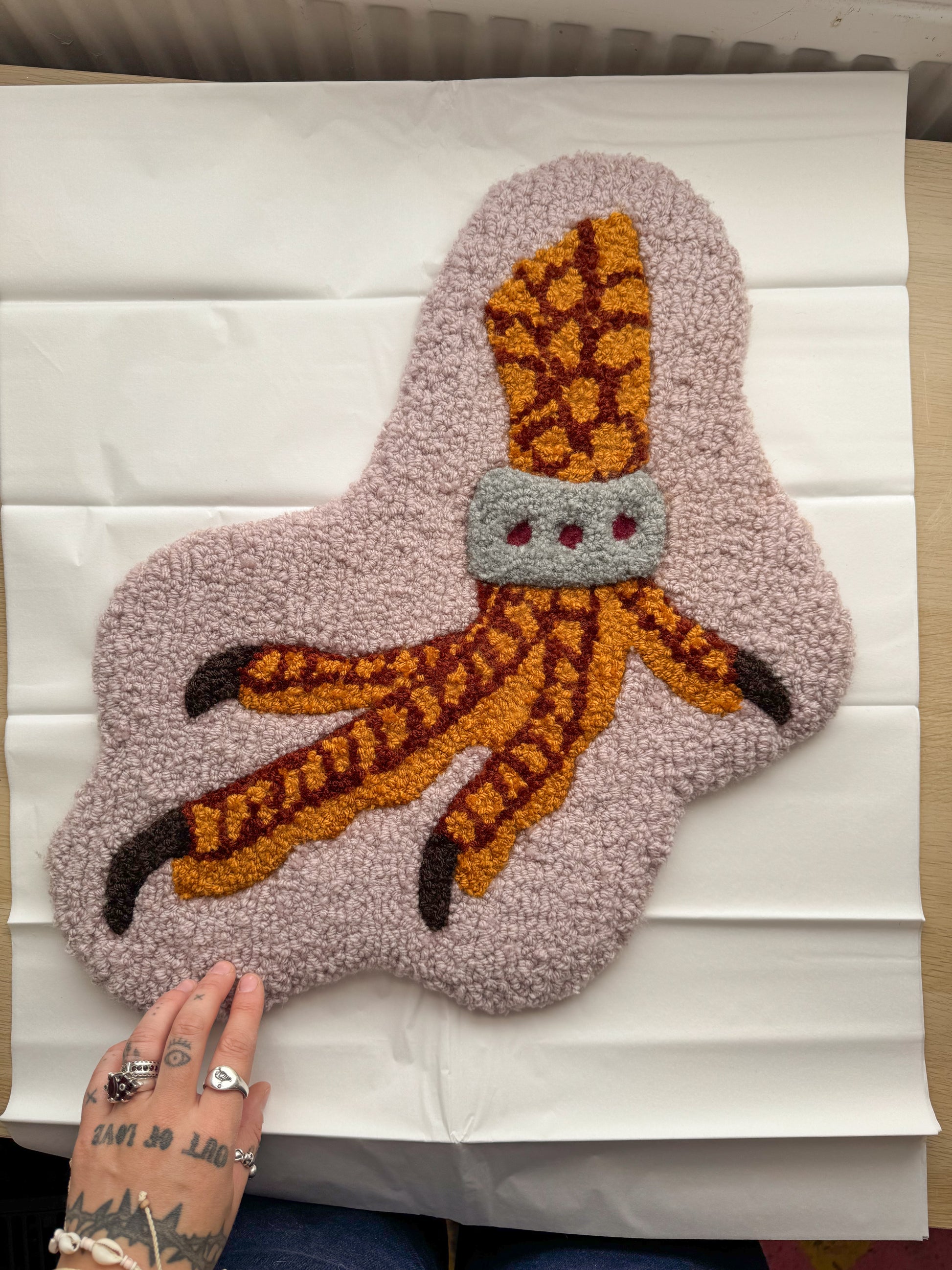 This piece has a D ring attachment for easy hanging and is finished with a hand embroidered label