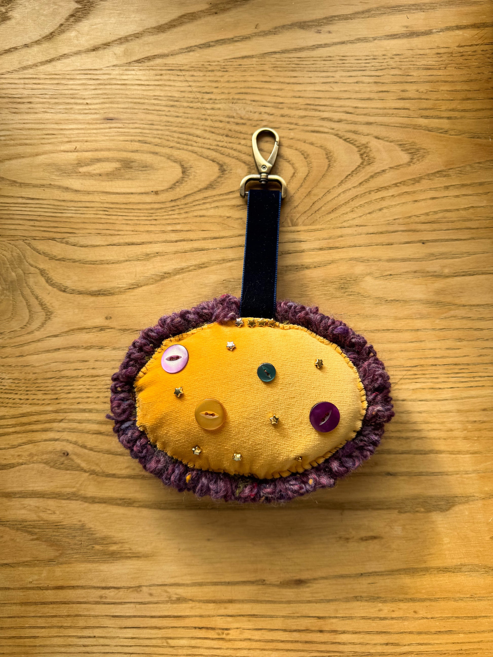 A one off and slow made Snail bag charm, hand drawn and kooky