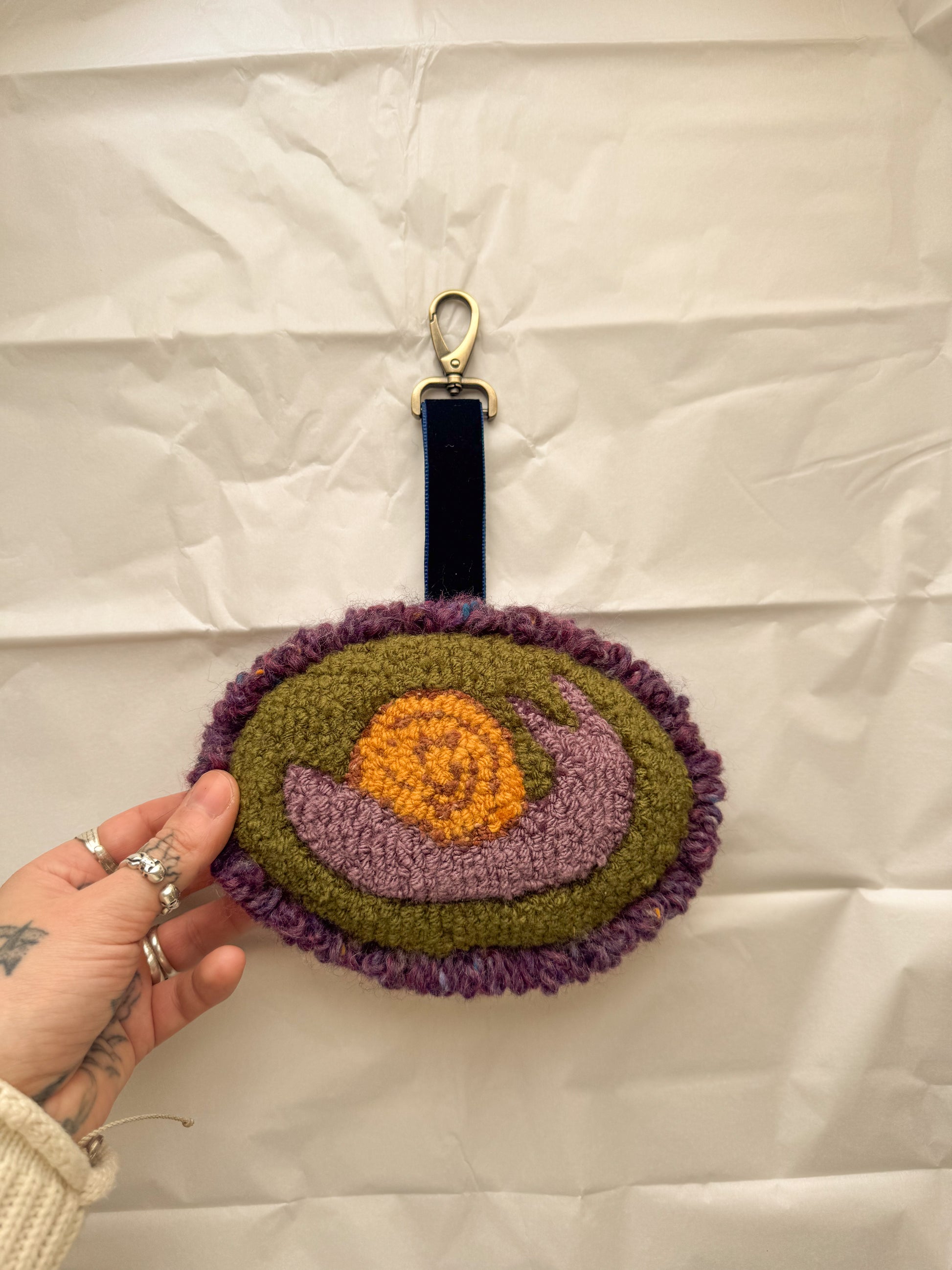 Made entirely by hand using a combination of punch needle and manual tufting tool