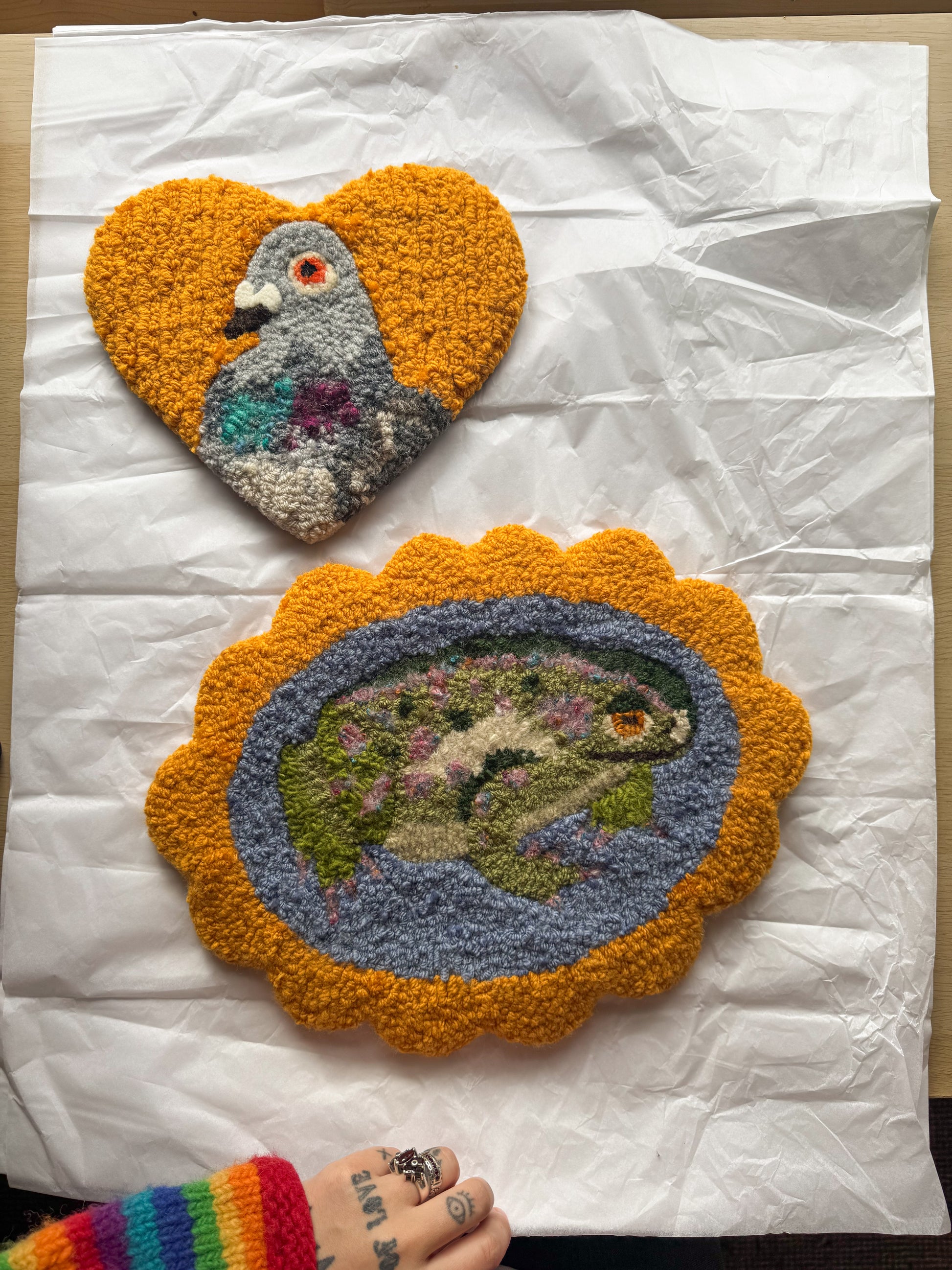 Tactile, fluffy art piece. Slow made by hand using a punch needle
